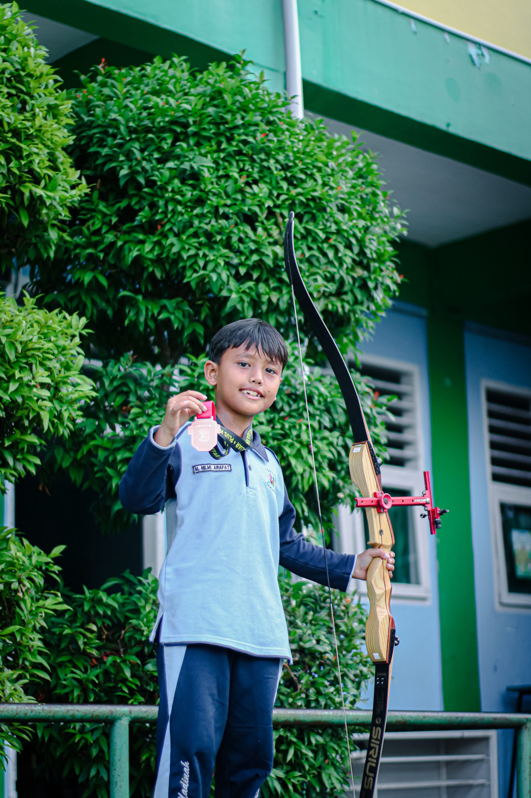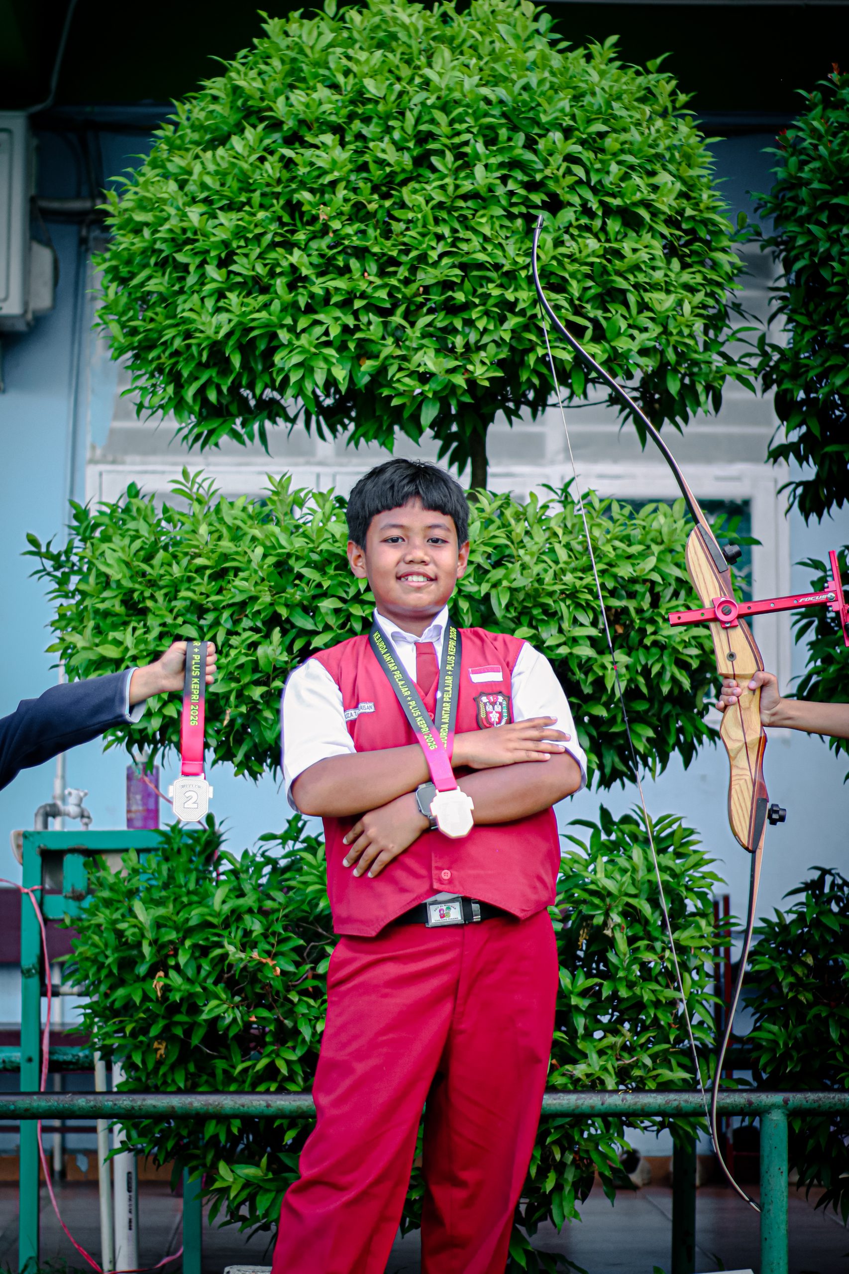Bergeser ke jarak 8 meter, ketajaman bidikan Fattah Adhitama ( Kelas 5 Thalhah ) tertandingi. Konsistensinya dalam menempatkan anak panah di area kuning target face mengantarkannya meraih Medali Emas (Juara 1).